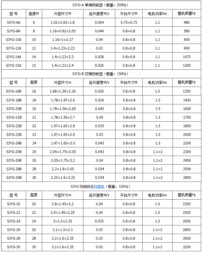 1、套缸式液壓升降平臺電壓均為220V,需380V時單獨注明。